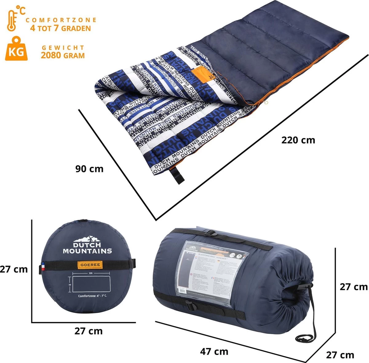 De Goeree is dé topslaapzak van het Nederlandse Dutch Mountains. Hij is gemaakt van prachtige materialen en biedt uitstekende lucht- en vochtregulerende eigenschappen. De handige opbergvakjes, ‘glow in the dark’ zippers, tochtstrip en de mogelijkheid om twee slaapzakken te ritsen maken de Goeree helemaal af. Rek je trouwens gerust even uit in deze grote allrounder na een zalige nacht slapen. Met een afmeting van 220 x 90 cm moet dat wel lukken!
