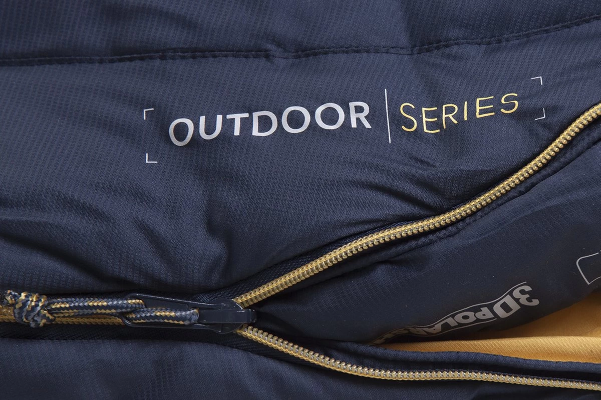 Deze slaapzak heeft een zachte, gewatteerde capuchon die je door middel van een koord strakker om je hoofd kunt trekken voor meer warmte. De handige tweewegrits kun je – zoals het woord al doet vermoeden – in twee richtingen openen. Dit is handig wanneer je bijvoorbeeld bij je benen wat ventilatie wil creëren. Daarnaast is de rits zelf wel 145 cm lang, wat betekent dat je ‘m tot ver onderaan kunt openritsen. Binnenin vind je een gewatteerde tochtstrook wat ervoor zorgt dat waardevolle lichaamswarmte niet via de rits ontsnapt. Ook fijn: onderaan de slaapzak bevindt zich bij het voeteneind een ‘3D footbox’ constructie. Dit biedt net dat extra beetje ruimte voor je voeten.
